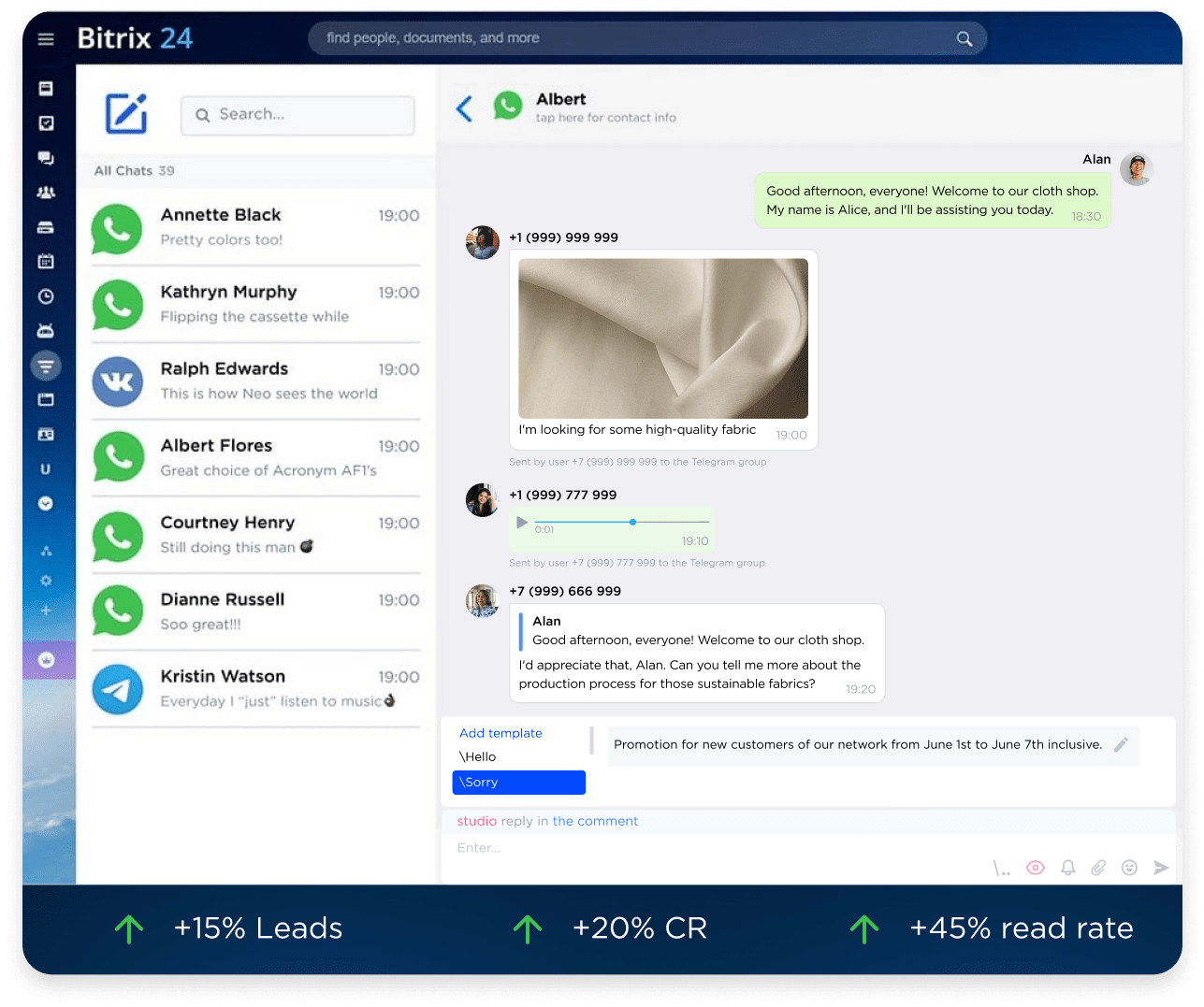 Quando o WhatsApp está integrado ao Bitrix24 via MandaZap, ele deixa de ser apenas um chat e passa a ser parte ativa do funil comercial.