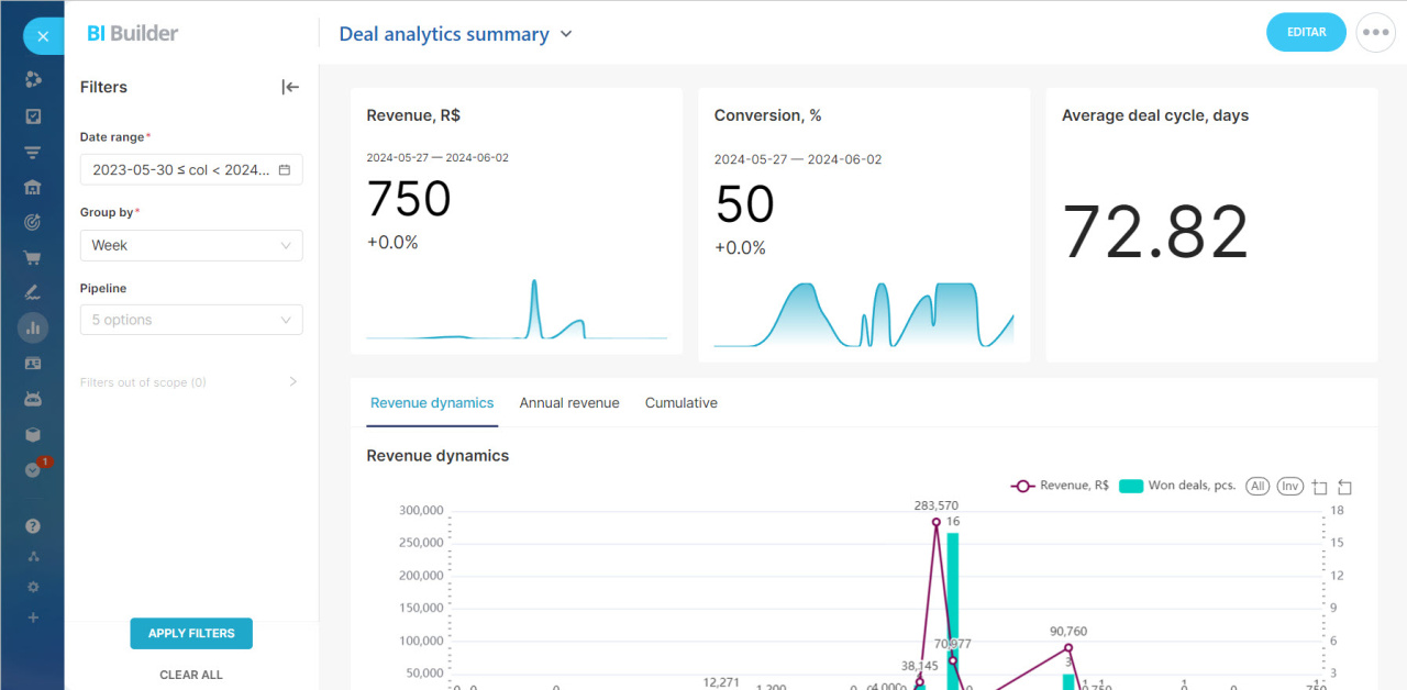 Quando bem estruturado, o BI transforma o Bitrix24 no cérebro da operação.